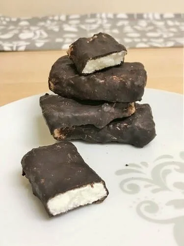 If you love Bounty bars then you'll love this super simple recipe to make your own. Little bites of delicious coconut goodness covered in chocolate. And to make them even better, this recipe is gluten free, dairy free, vegan, and completely sugar free! Find out just how easy these Paleo Vegan Low Carb Bounty Bars are to make.